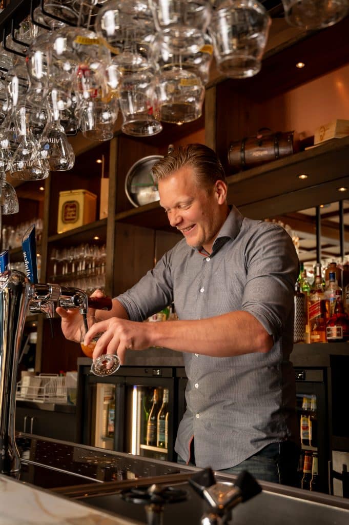 “Alle koelinstallaties zijn vervangen – de oude waren sterk verouderd en gebruikten veel energie. Ook de bierinstallatie werkt nu met waterkoeling en gebruikt nog geen tien procent van de stroom van het oude systeem. Verder hebben we alle verlichting vervangen door LED en nieuwe airco’s geplaatst. En bij de ingang van het café hebben we een tochtsluis gebouwd. Dat lijkt een ouderwetse maatregel, maar het scheelt enorm in warmteverlies. Vroeger sloeg bij elke deurbeweging een klap koude lucht naar binnen; nu blijft de temperatuur binnen veel stabieler.”